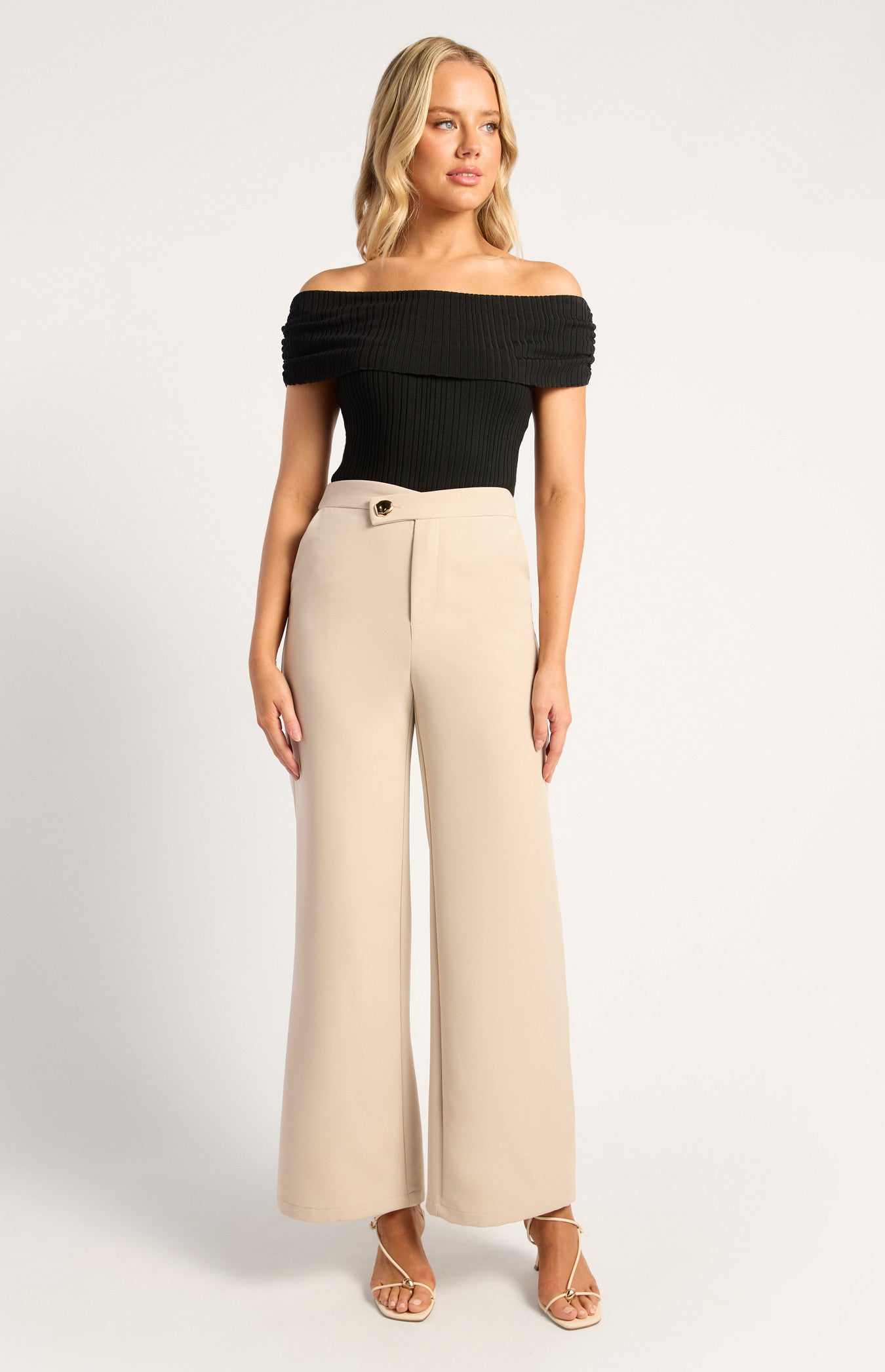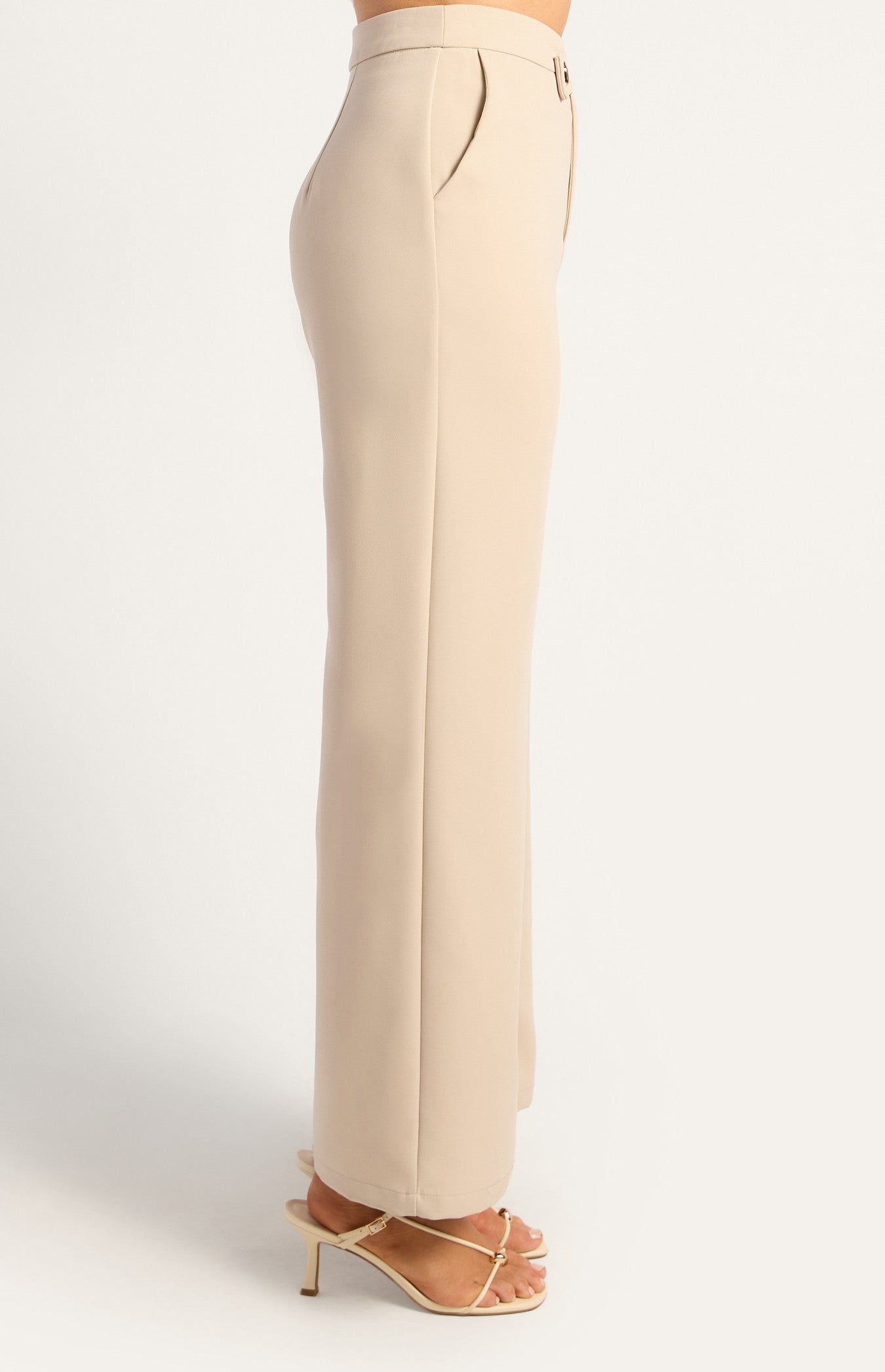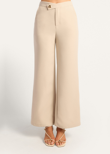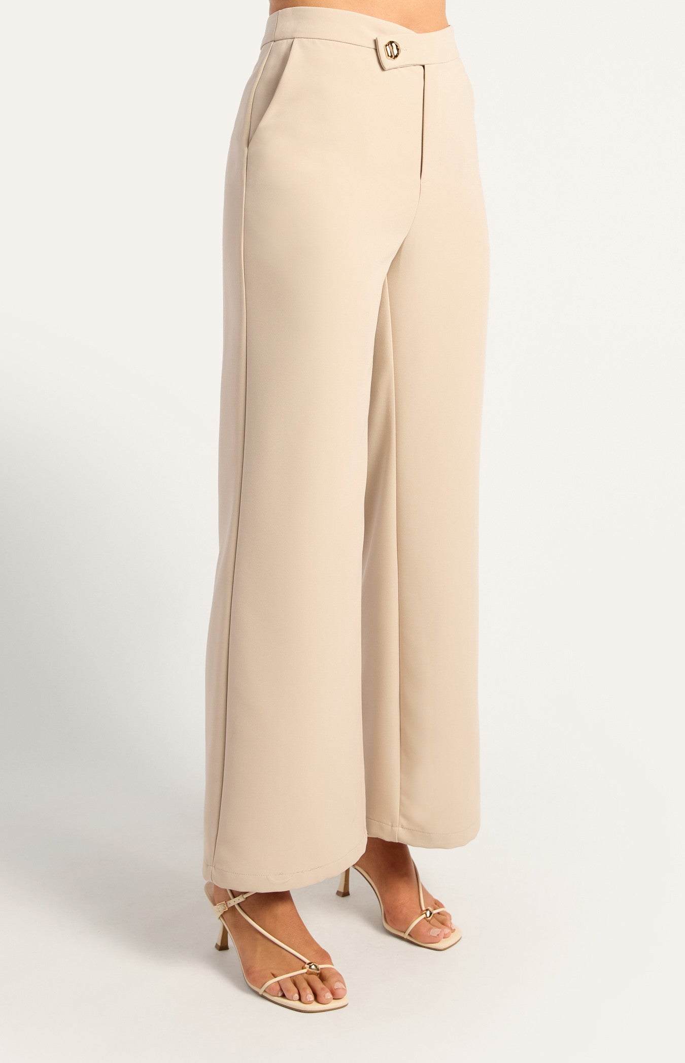 Asymmetric Waistband Pants Beige