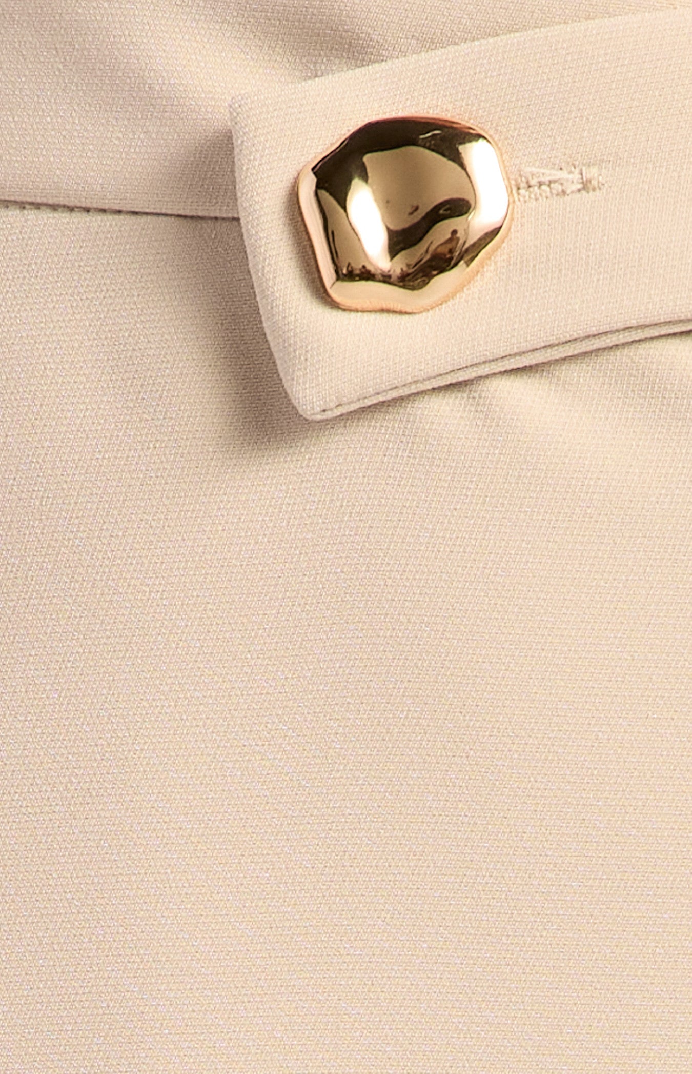 - Front fly with textured gold button feature