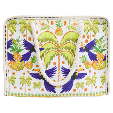 The Paradise Tote Bag - perfect for sun-soaked days at the beach or poolside afternoons. Featuring a relaxed, natural cotton and polyester blend with rope handles. The spacious design is perfect for carrying your essentials, whether you use it as an everyday bag, travel bag or beach bag!