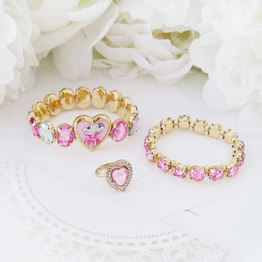 - Includes: x1 locket bracelet, x1 gemstone bracelet, x1 heart shaped ring.