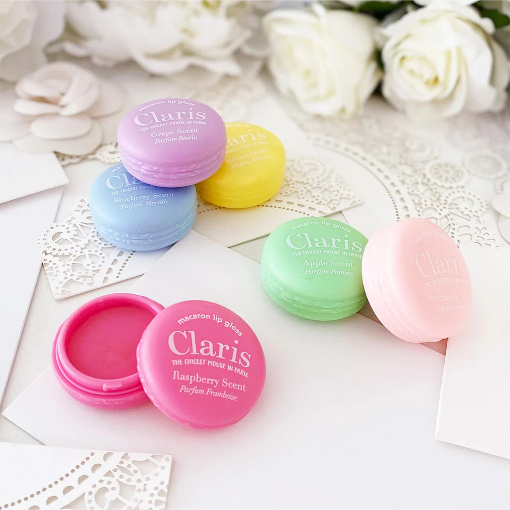 Macarons! Claris's absolute favorite treat! The Claris Macaron Lip Gloss Duos feature beautifully scented lip glosses, sold as sets of two. With 6 delicious flavors of raspberry, marshmallow, banana, apple, blueberry and grape, how can you ever choose your favorite?
