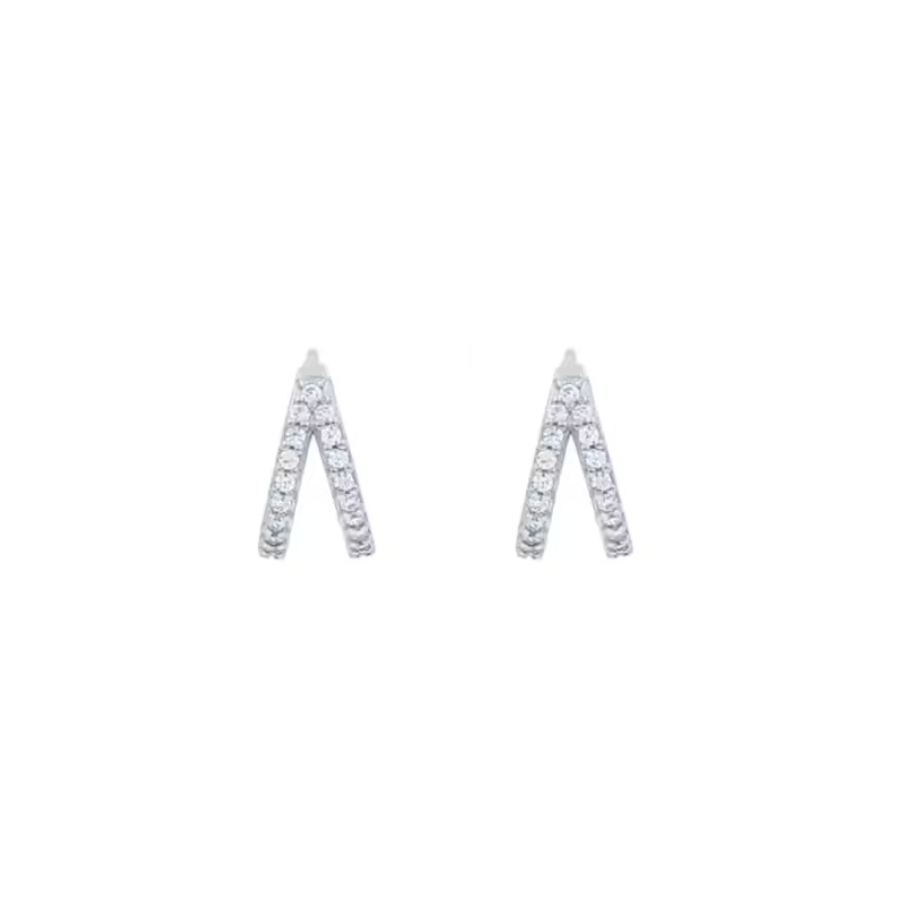 Two Row Huggie Earrings Silver