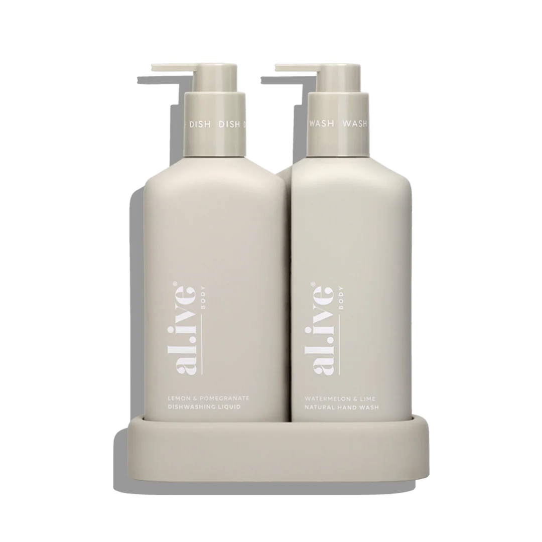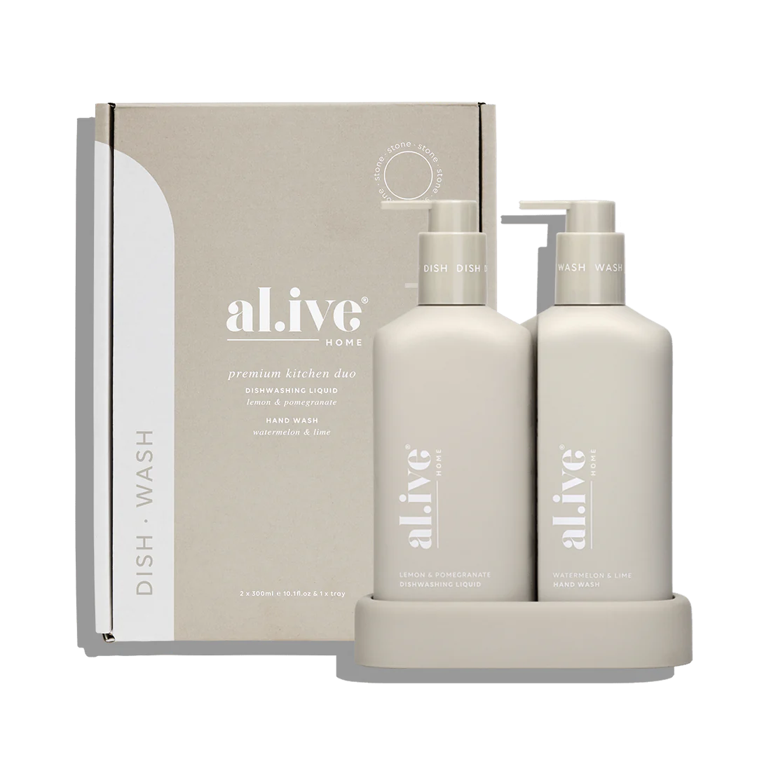 The al.ive body Hand Wash & Dishwashing Liquid Premium Kitchen Duo is a beautiful yet practical product, elegantly packaged to elevate your countertop.