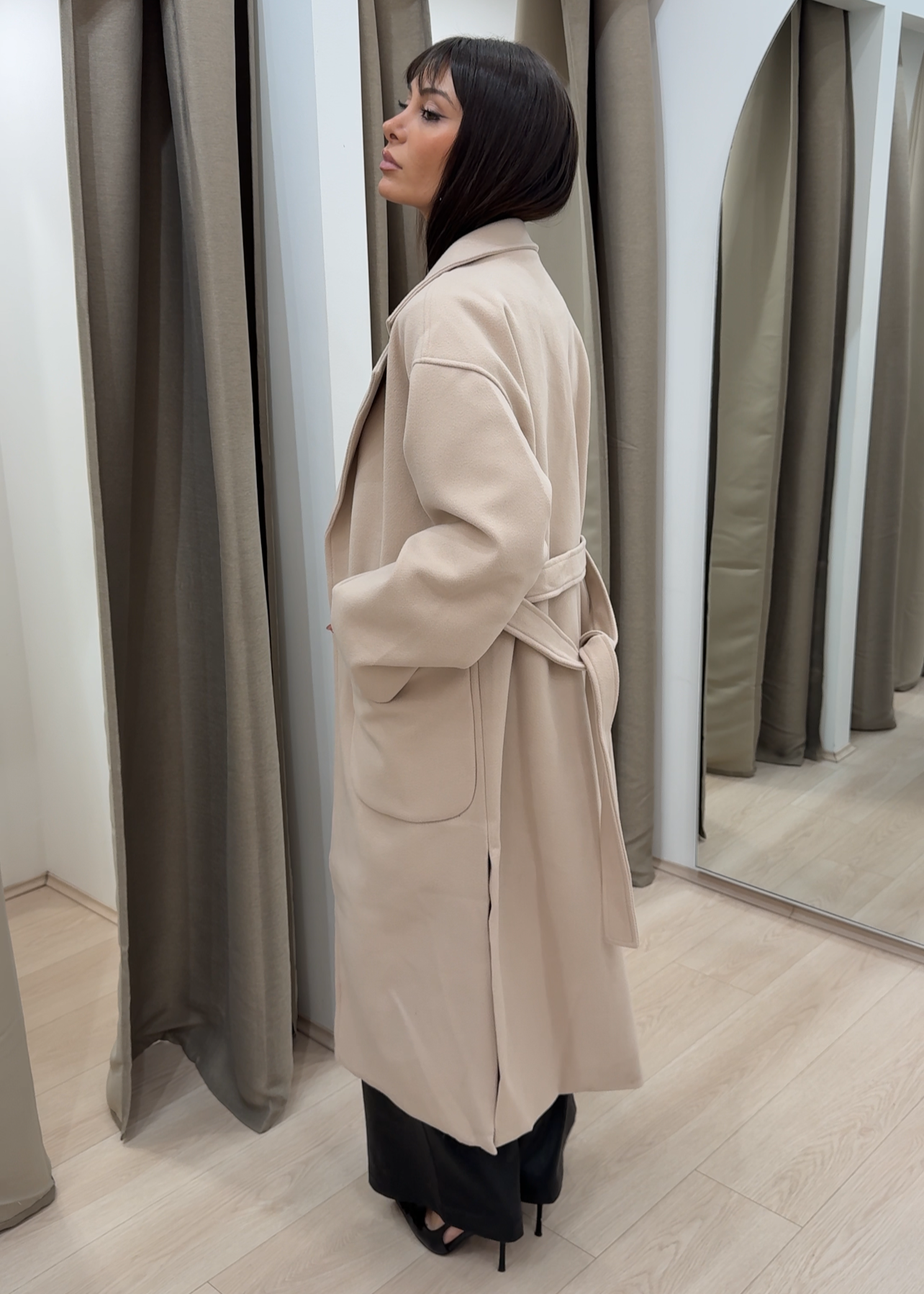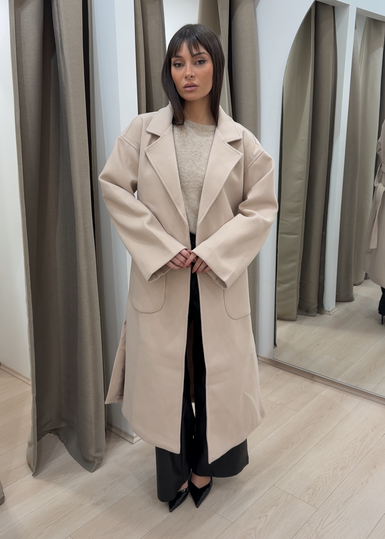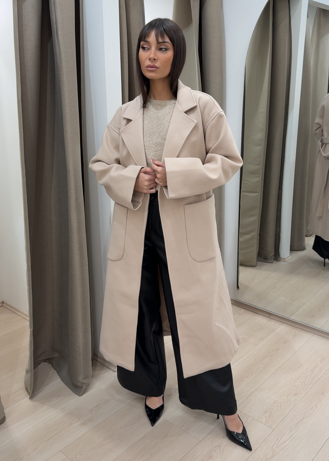 The Paris Coat - designed in an oversized silhouette for effortless layering. Featuring a structured collared neckline, two front patch pockets, side splits and a waist tie belt to cinch the waist. This coat blends style and comfort, perfect for layering - whether worn open over denim or cinched over a dress on a night out.