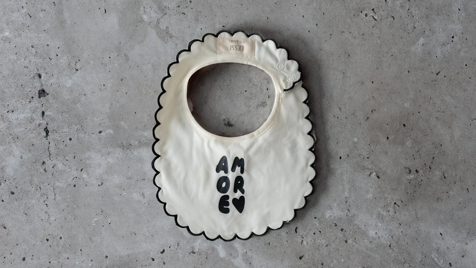 Mealtime just got a little sweeter with the Amore Bib. Featuring our signature Amore detail and a delicate scalloped embroidered edge, this bib comes in bold Rosso or classic Nero for a touch of Italian charm. Designed with an adjustable snap clip for a secure and comfy fit, it’s as practical as it is adorable. Available individually or as part of a set — the perfect gift or everyday essential for your little love.