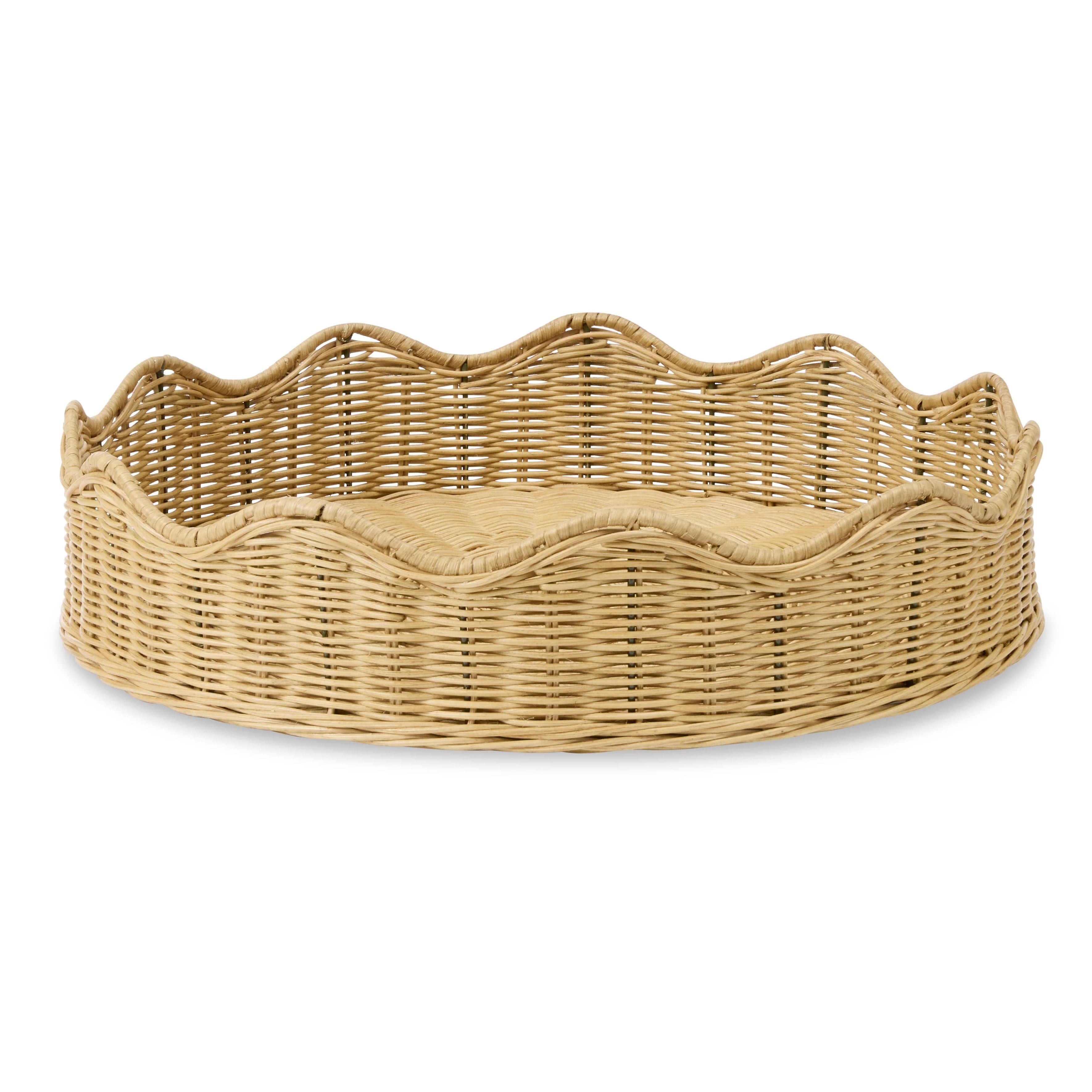 Handwoven rattan wavy tray in natural honey colour.