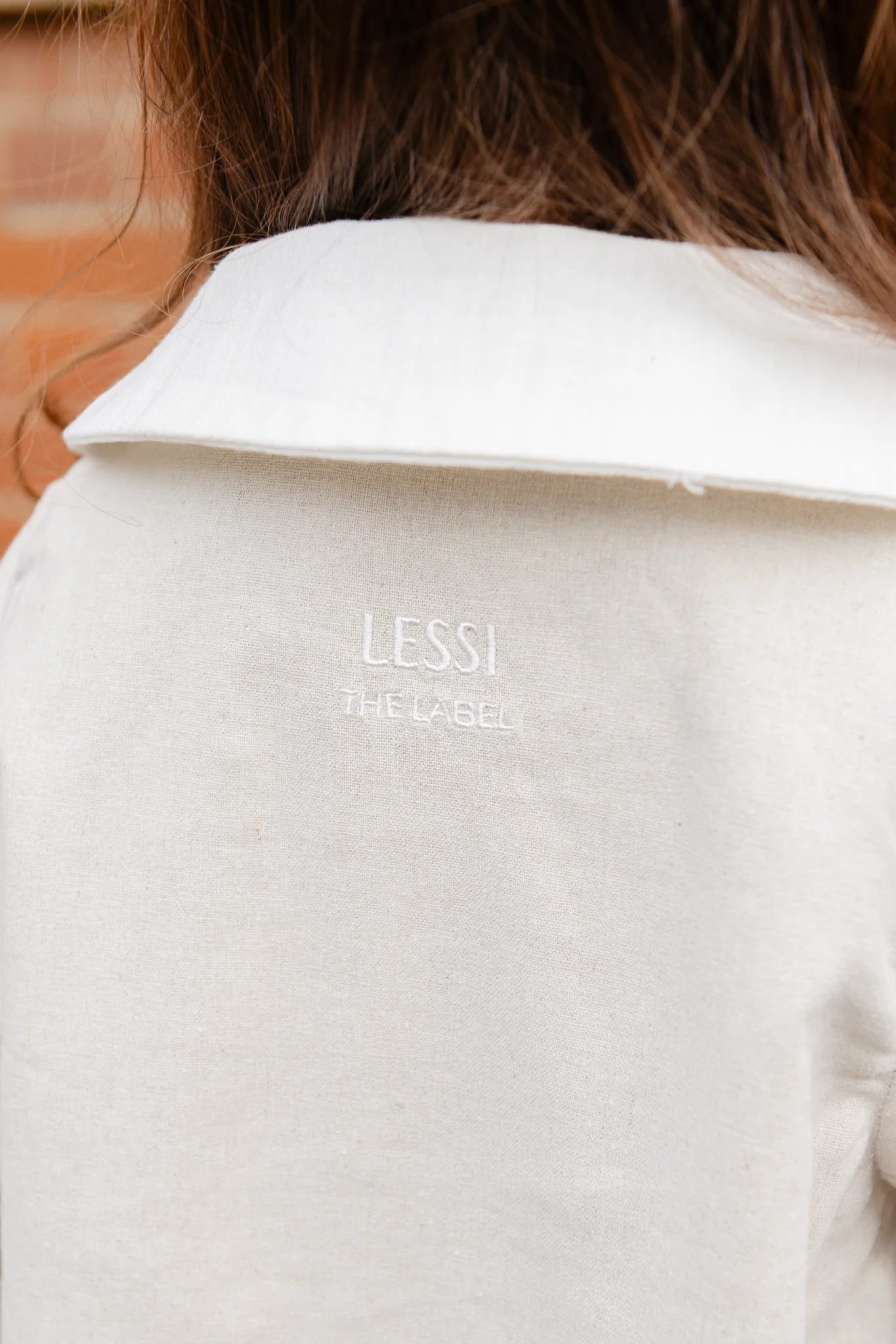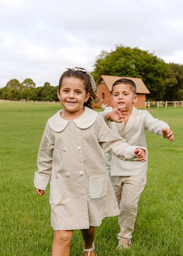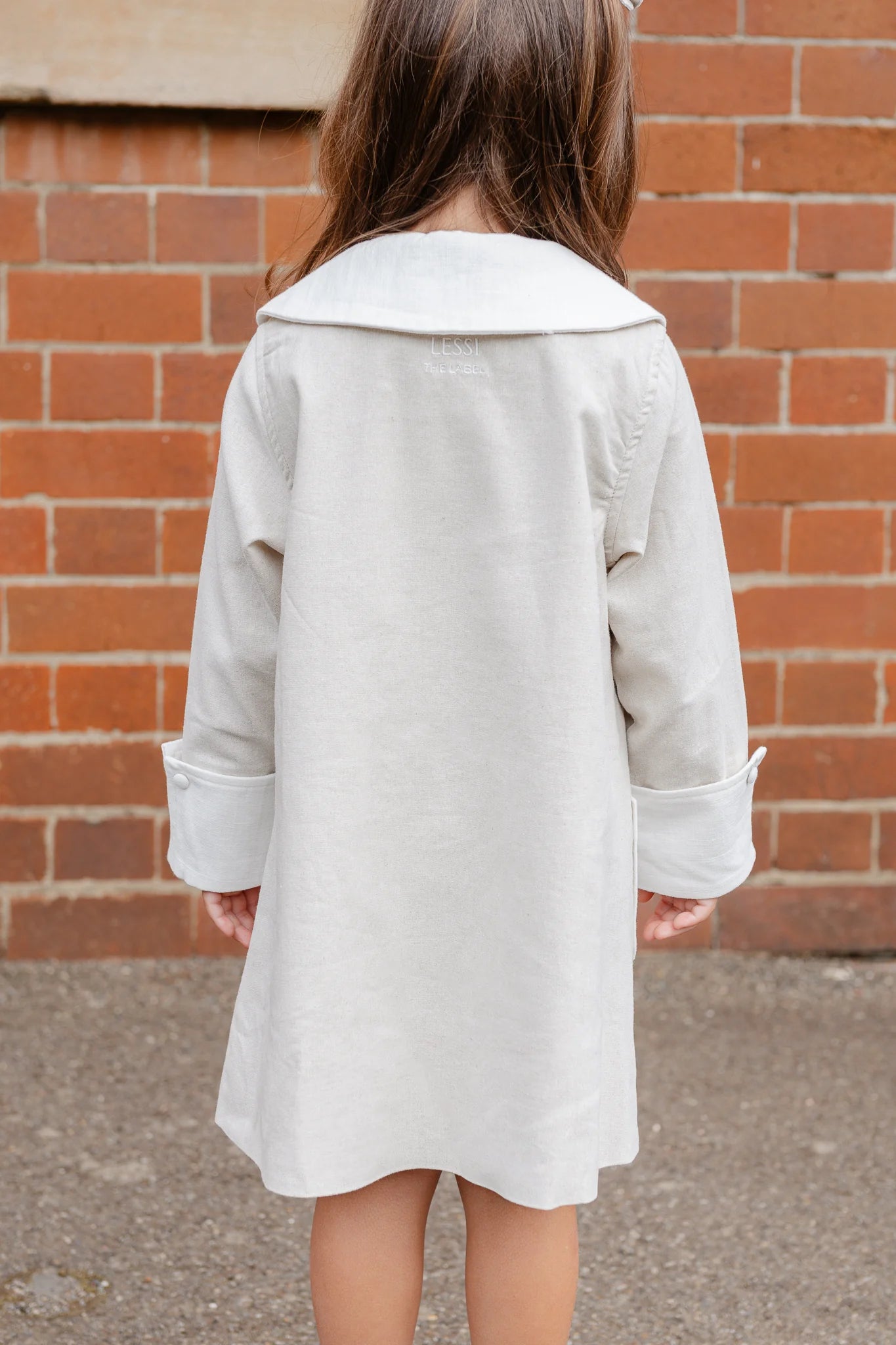 The Juliet Dress is a timeless double-breasted style crafted from a soft cotton and linen blend. Featuring delicate collar, pocket and cuff detailing, it blends classic tailoring with everyday comfort.