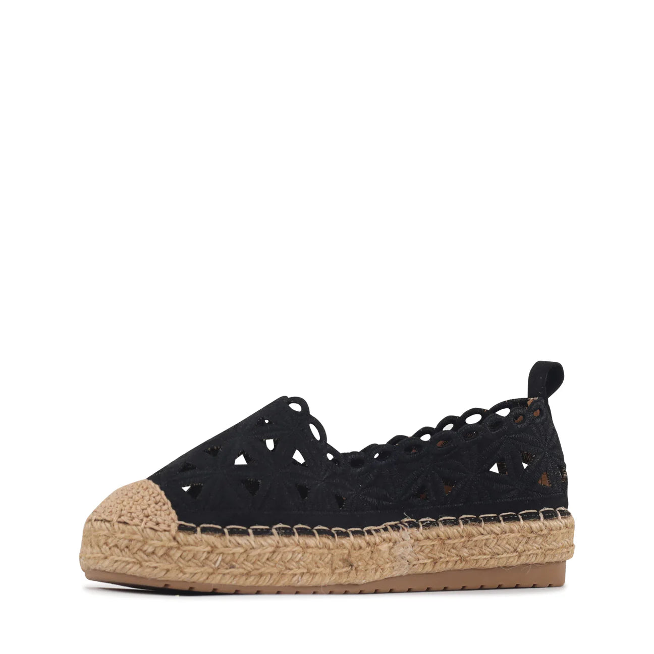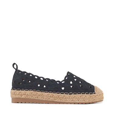 Shop the Lace Espadrille Black, a slip-on flat which brings a fresh, feminine feel to warm-weather dressing. Designed with a delicate cutout upper, it lets your feet breathe while adding beautiful texture and detail. The woven jute midsole gives it a relaxed, coastal vibe, balanced by a supportive rubber outsole for everyday comfort. Easy to slip on and endlessly versatile, it’s the perfect companion for sunny days.